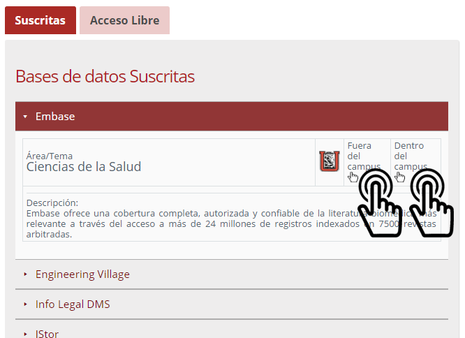 Si se encuentra conectado en la red de la Universidad Surcolombiana hacer clic en Dentro del campus, de lo contrario Fuera del campus".