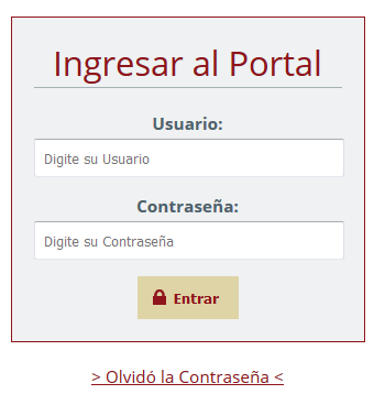 Ingresar usuario y clave de acceso al portal, si desea recuperar la clave hacer clic en > Olvidó la Contraseña <.